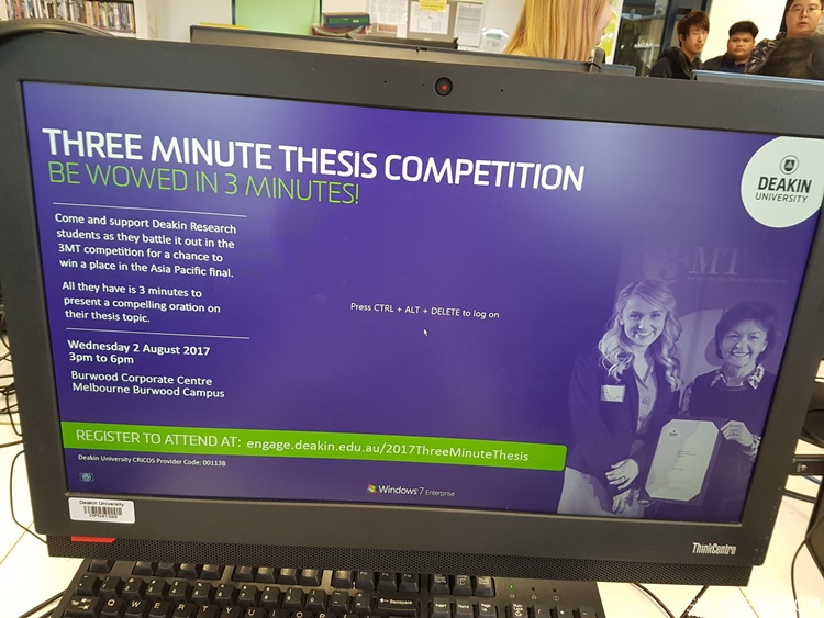 ตอนที่เราไปเรียนภาษาที่ Deakin University ประเทศออสเตรเลีย ได้สักช่วงเวลาหนึ่ง เราได้สังเกตเห็นด้านการประชาสัมพันธ์ข่าวสารของทางมหาวิทยาลัยแล้วพบว่า ทางมหาวิทยาลัยได้มีความใส่ใจในการที่จะนำสารหรือข้อมูลนั้นๆส่งไปให้ถึงนักศึกษาอย่างมาก คือนอกจากการส่ง E-mail การติดประกาศ และฝากคุณครูมาแจ้งในห้องแล้ว อีกสิ่งหนึ่งที่เรามองว่ามันได้ผล นั่นก็คือการโชว์ภาพและประโยคหลักไว้ที่หน้าจอเครื่องคอมพิวเตอร์ทุกเครื่อง ก่อนที่นักศึกษาจะ log in เข้าสู่ระบบ ซึ่งข่าวสารที่แจ้งนั้นก็มีทั้งกิจกรรมที่เป็นประโยชน์แก่นักเรียน การลุ้นรางวัลร่วมเล่นเกมส์ การแข่งขัน และงานอีเว้นต่างๆ