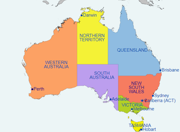 สำหรับใครที่จะไปเรียนต่อหรือไปหาประสบการณ์ในประเทศออสเตรเลียเราควรจะมารูจักประเทศออสเตรเลียกันก่อนโดยในบทความนี้เราจะมาทำความรู้จักกับรัฐและเขตต่างๆของประเทศออสเตรเลีย โดยสามารถแบ่งออกได้เป็นรัฐและเขตต่างๆ ดังนี้