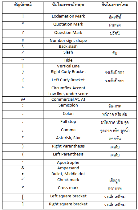 สัญลักษณ์ต่างๆในภาษาอังกฤษ