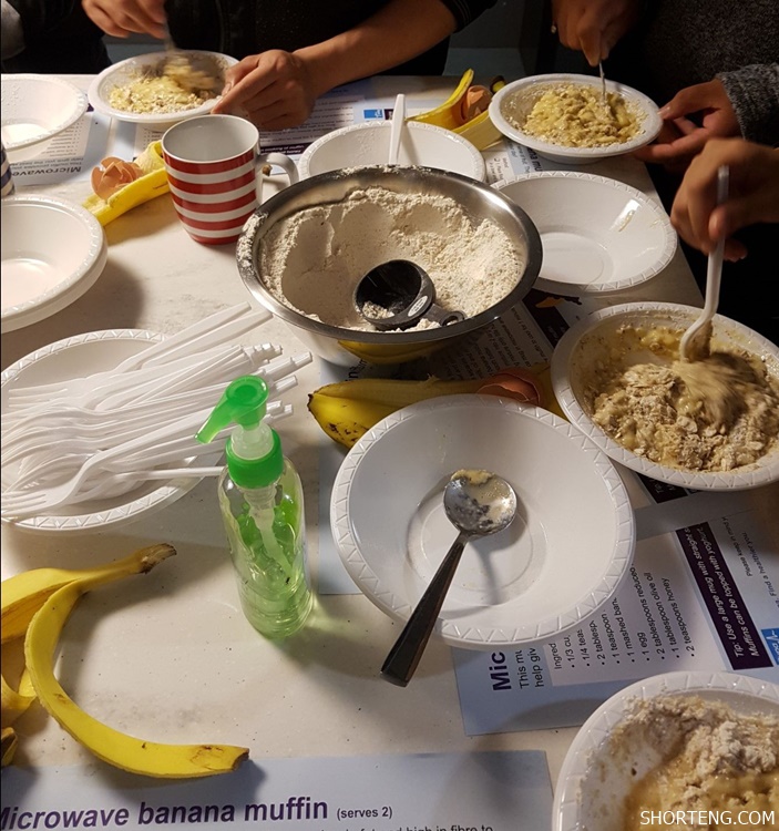 เนื่องจากกิจกรรมนี้เป็นกลุ่มเฉพาะเล็กๆ ดังนั้นเจ้าหน้าที่จะดูและนักเรียนทุกคนอย่างทั่วถึง ทุกคนจะได้ฟังพูดและใช้ภาษาอังกฤษอย่างเต็มรูปแบบ เพราะกิจกรรมนี้ต้องอาศัยการสื่อสารกันมากพอสมควร ผู้สอนก็จะแจ้งอัตราส่วนการทำขนมและชนิดของวัตถุดิบ ขั้นตอนการทำต่าง ในขณะที่นักเรียนที่ร่วมกิจกรรมก็จะต้องใส่ใจขั้นตอนการทำอย่าละเอียด โดยสุดท้ายแล้วทุกคนก็จะทำขนม Banana Muffin ออกมาในรูปแบบของตัวเอง