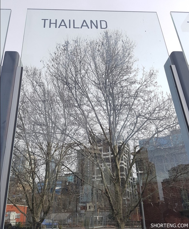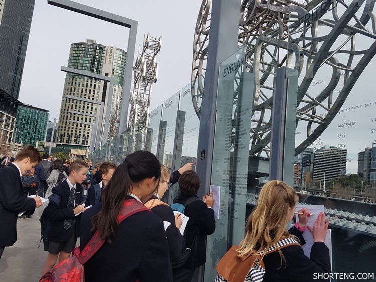 โดยป้ายดังกล่าวจะมีลักษณะใส เรียงรายอยู่ด้านข้างบนสะพานข้ามแม่น้ำ Yarra River ซึ่งการไปครั้งนี้คุณครูก็ให้นักเรียนนานาชาติทุกคนศึกษา แล้วลองค้นหาป้ายของประเทศตัวเองว่ามีข้อมูลอะไร เป็นอย่างไรบ้าง จากการเดินดูเราก็ค้นพบป้ายของประเทศไทยเราด้วย มีรายละเอียดน่าสนใจ ทำให้เราได้รู้ว่าประเทศออสเตรเลียก็มีคนไทยอาศัยพอสมควร ขณะที่เดินอ่านป้ายก็เช่นเคย พบกับเด็กนักเรียนชั้นประถมมัธยมต่างๆ มาทัศนะศึกษาข้อมูลการอพยพของชนชาติอื่นมาออสเตรเลียเช่นกัน ทำให้เห็นว่าที่นี่เน้นการศึกษานอกห้องเรียนจริงๆ